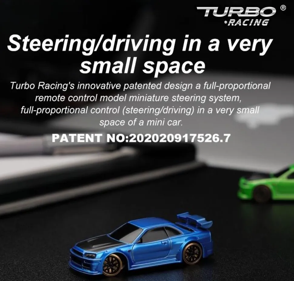 La Turbo Racing est une micro voiture RC au 1/76ème (elle tient sur un pouce de la main). Les commandes sont entièrement proportionnelles et similaires à des modèles de plus grandes échelles. La conduite est bluffante et accessible à tous (néophytes ou modélistes avertis). L’autonomie des voitures est de 40 minutes et la recharge se fait via une prise USB-C qui se trouve sous la voiture. Les Turbo Racing sont des voitures extrêmement fiables et il y a rarement de la casse. On peut rouler sur une table ou un plan de travail. Pour le tracé, il existe des pistes/tapis de différentes tailles mais on peut également envisager de construire et de décorer sa propre piste à la manière d’un train miniature (maquette de bâtiments, végétation, flocage…).