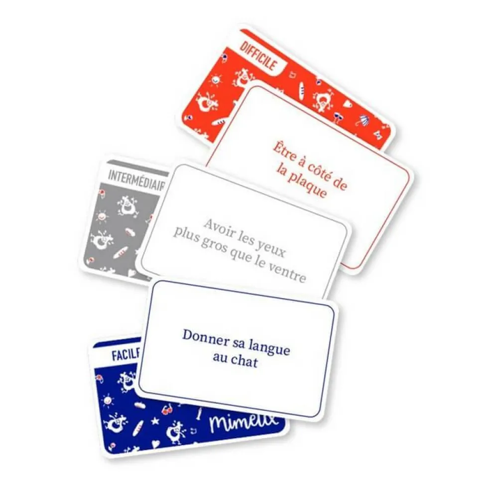 Parmi les 700 cartes du jeu, découvrez des cartes Action pour pimenter la partie. Vous pourrez également découvrir 2 modes de jeu et 3 niveaux de difficultés d’expressions pour passer de bons moments en famille et entre amis !