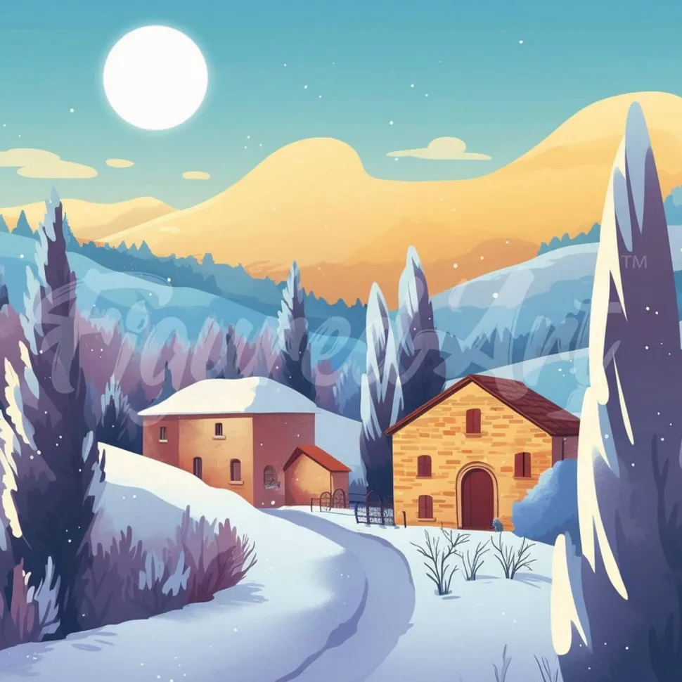 Description du produit : Mini broderie diamant : Nuit d’Hiver en Toscane – sans chassis en bois