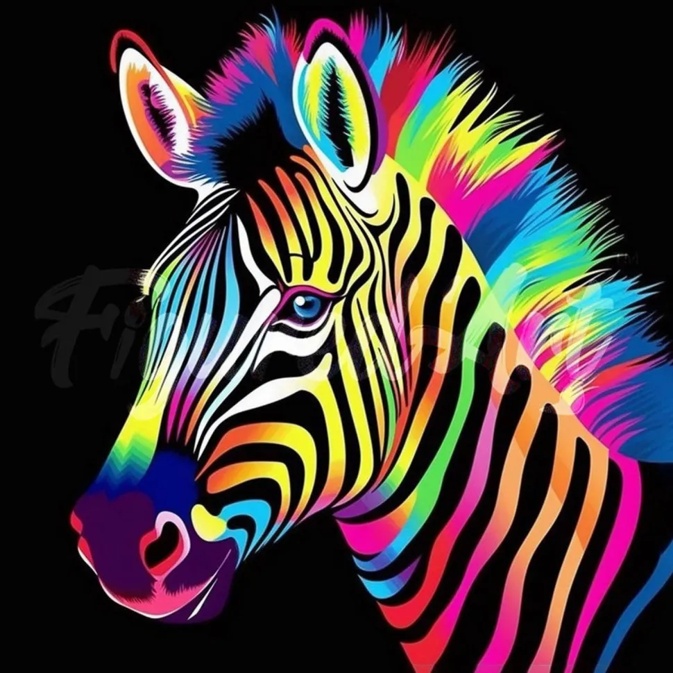 Caractéristiques détaillées : Mini broderie diamant : Zèbre Néon – toile tendue sur chassis