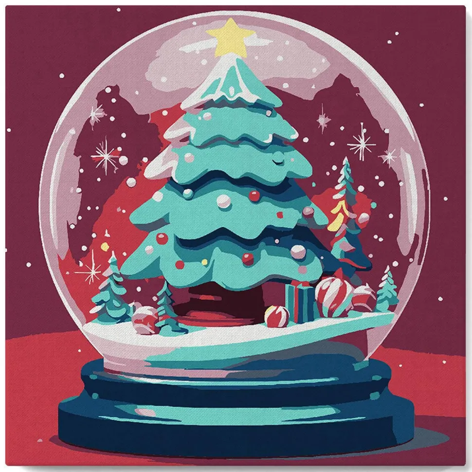 Caractéristiques détaillées : Mini peinture au numéro : Boule à Neige et Sapin de Noël – toile tendue sur chassis
