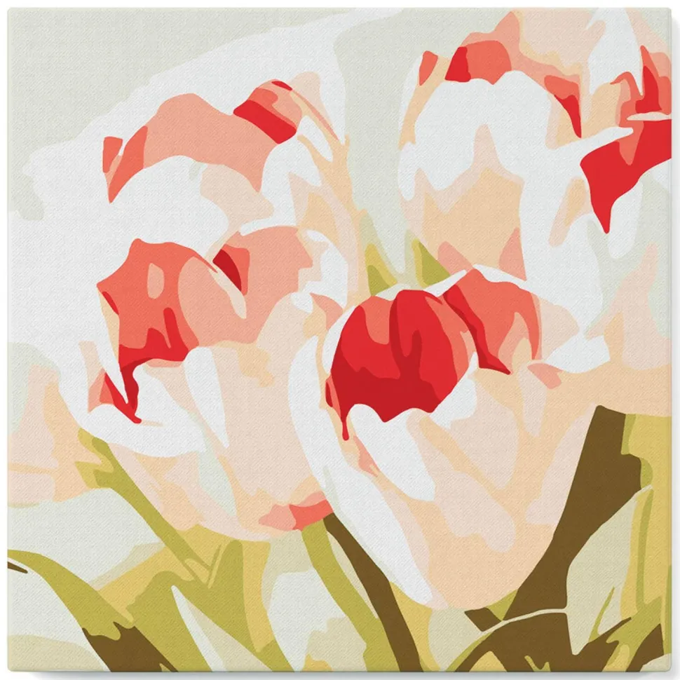 Caractéristiques détaillées : Mini peinture au numéro : Eclosion de Tulipes – toile tendue sur chassis