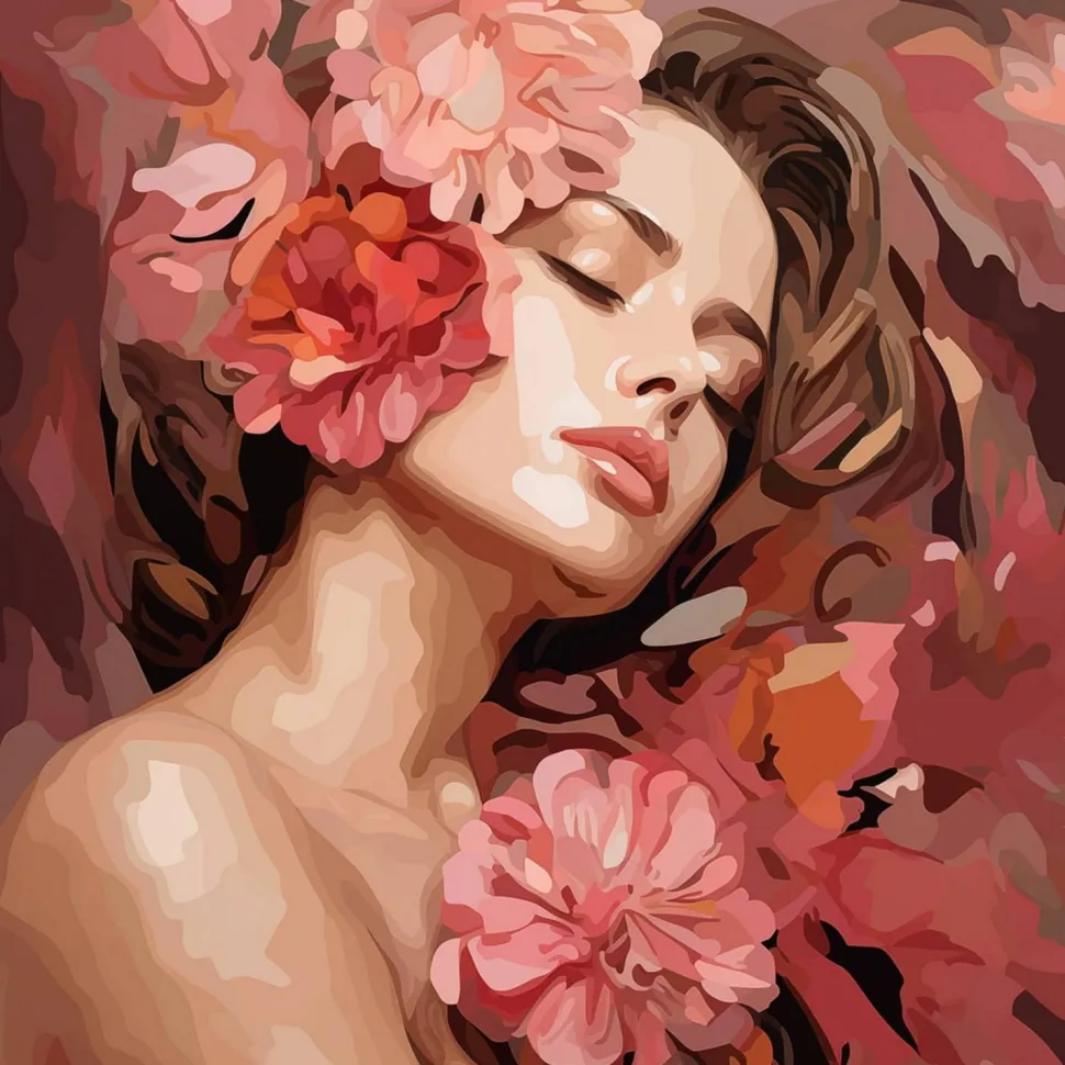 Caractéristiques détaillées : Mini peinture au numéro : La Belle endormie aux camélias – toile tendue sur chassis