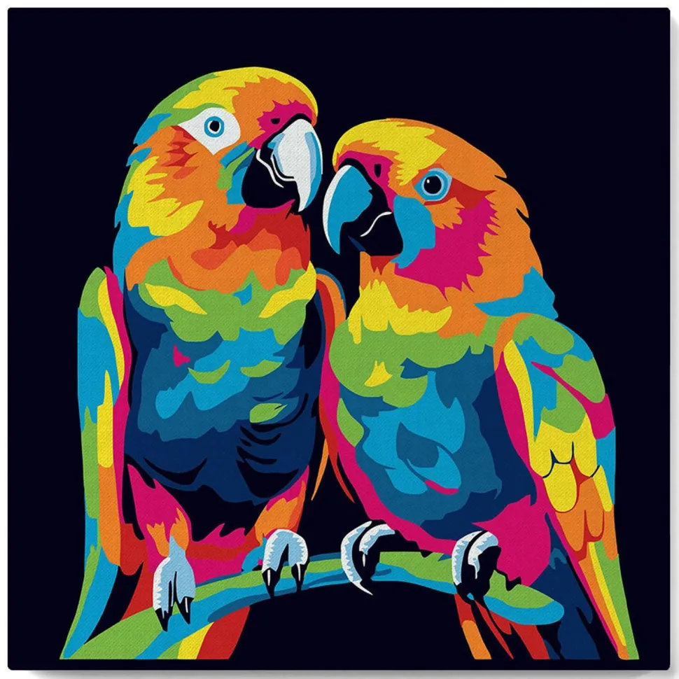 Caractéristiques détaillées : Mini peinture au numéro : Perroquets Abstraits Pop Art – toile tendue sur chassis