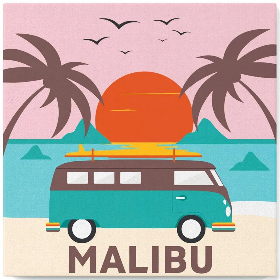 Description du produit : Mini peinture au numéro : Plage Malibu – toile tendue sur chassis