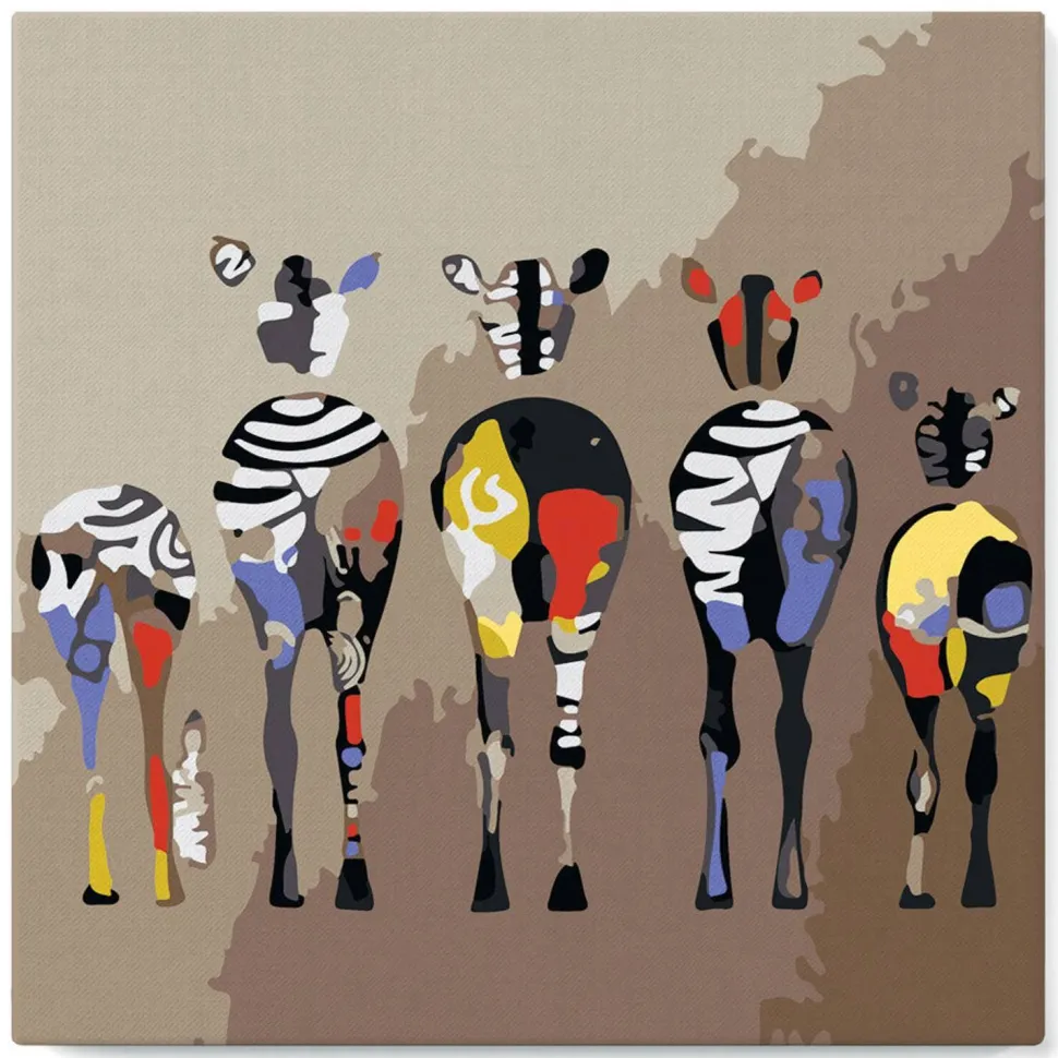 Description du produit : Mini peinture au numéro : Zèbres de dos – toile tendue sur chassis