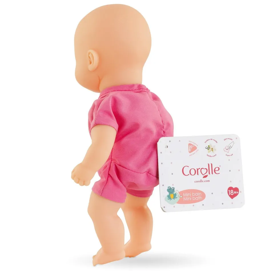 Mini Bain Rose est un mini poupon de 20 cm. Léger et facile à emmener partout, il est idéal pour accompagner le bain quotidien de l’enfant et les baignades à la piscine et à la mer. Petit poupon à la peau claire : son visage, ses bras et ses jambes sont en vinyle doux au toucher, à la délicate senteur de vanille. Yeux marron peints. mon premier poupon Corolle : pouponner pour la première fois. Dès 18 mois.
