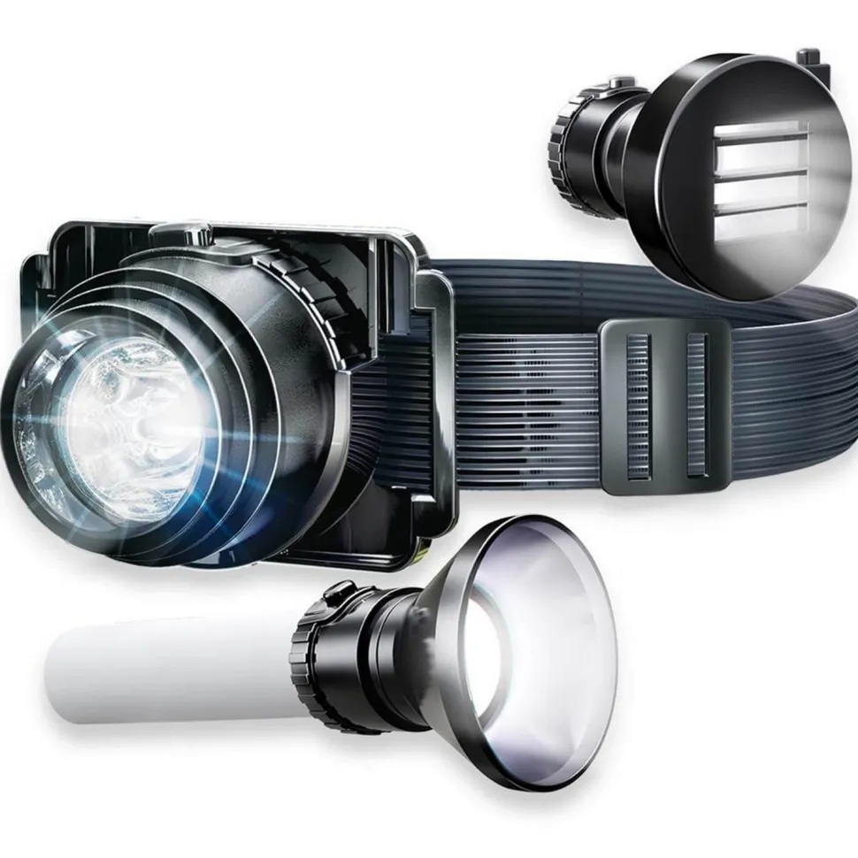 Illuminez, envoyez du code morse et naviguez dans l’obscurité comme un agent secret ! Cette lampe 6-en-1 peut être utilisée comme lampe frontale (avec bandeau réglable), lampe de poche, lampe de table, lampe de sécurité, lampe de camping et même comme clignotant en code Morse !