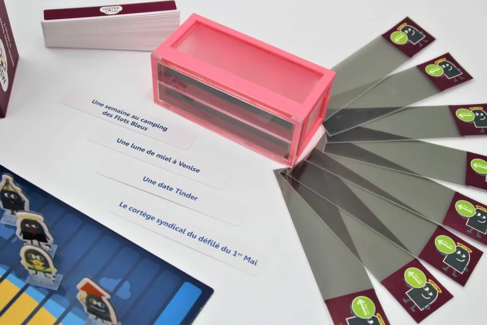 Aucun des joueurs de Mister Coco ne sait s’il est, ou pas Mister Coco. Tout le monde est dans le flou et devra utiliser subtilement des cartes objets mis à sa disposition pour tester l’assemblée des joueurs et se trouver des points communs avec ceux qui sont convié au même événement que lui… Ou a contrario avoir la confirmation qu’il est bien l’intrus, Mister Coco.