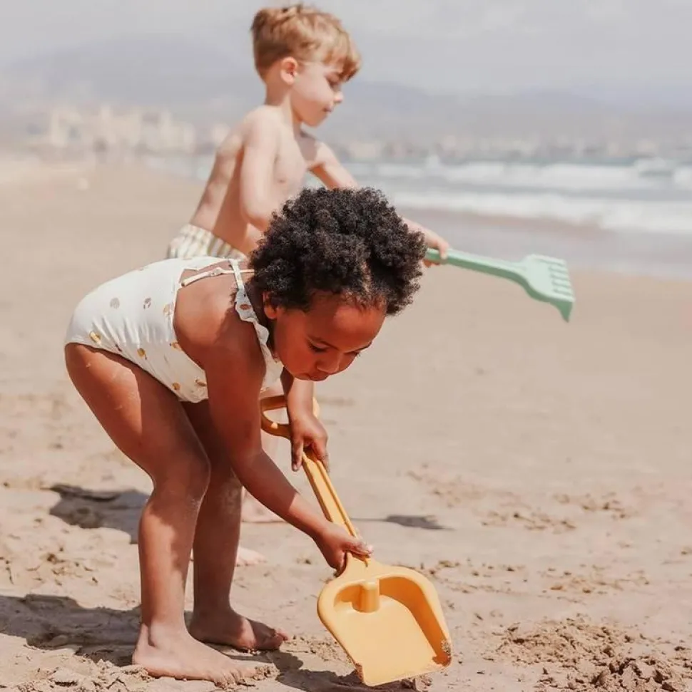 Un lot de 2 équipements parfaits pour creuser, façonner et dessiner sur le sable afin de réaliser les plus beaux bassins, chemins ou constructions imaginaires. La bêche, large et solide, permet de déplacer facilement de grandes quantités de sable, d’aplanir des surfaces ou de créer des fossés profonds. Le râteau, avec ses dents robustes, est idéal pour égaliser le sable, tracer des sillons ou dessiner des motifs amusants. Les jouets de plage et d’extérieur de Miniland, aux tons doux et apaisants inspirés du design scandinave, sont fabriqués à partir de plastique recyclé et de bioplastique. Un duo d’outils indispensable pour que les enfants puissent donner vie à leurs idées et s’amuser pendant des heures à la plage, dans le bac à sable ou au jardin.