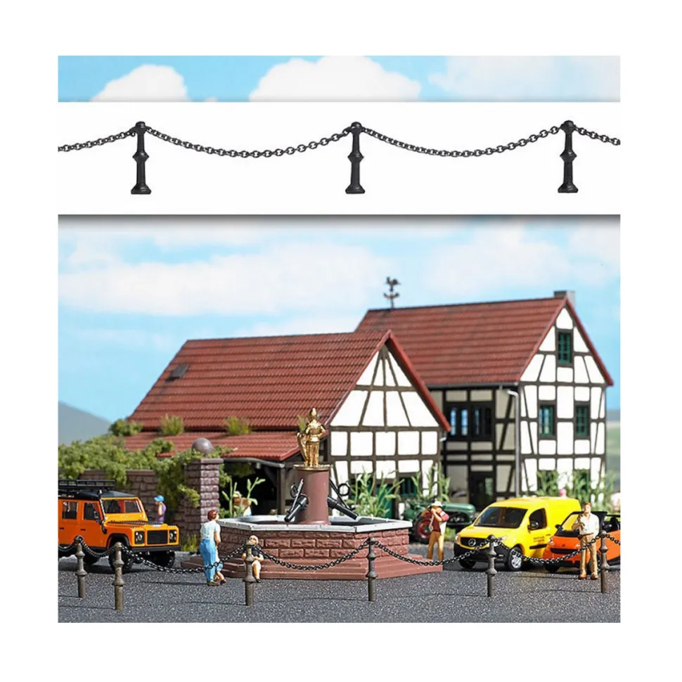 Busch 1023 vous propose ce set de clôtures à chaines. Longueur : 30 cmEchelle HO (1/87)