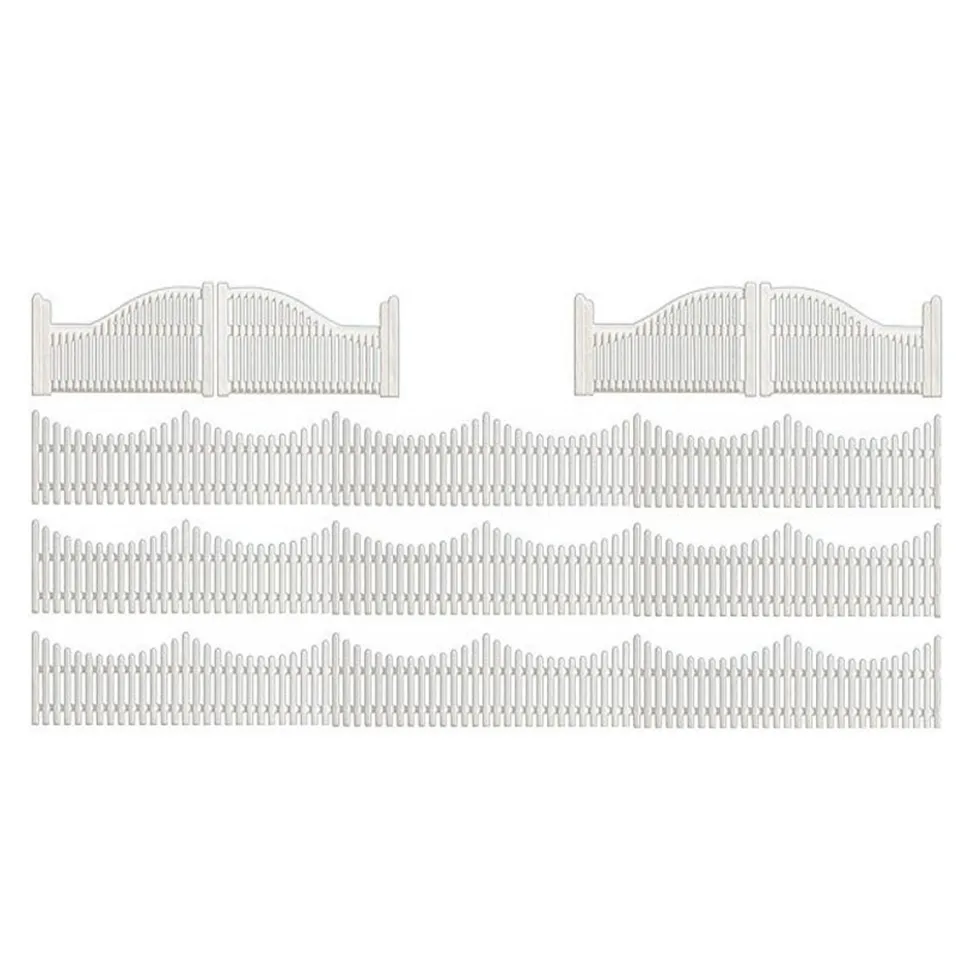 Busch 6009 vous propose ces clôtures blanches et leurs portails assortis.Ce set comprend plus de 100 cm de clôture de jardin avec 4 portes.Echelle HO (1/87)