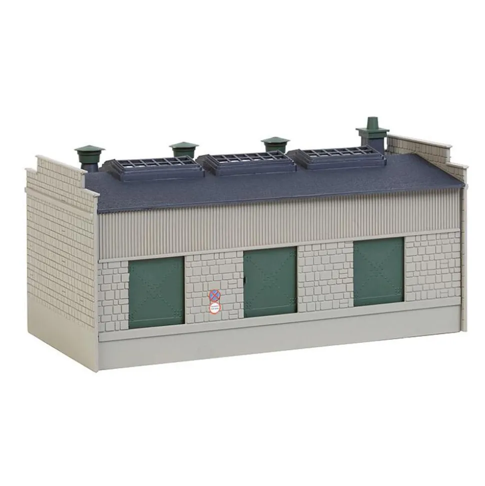 Kit de modélisme Faller : Atelier de camion.Ce kit de montage contient : 43 pièces détachées dans 3 couleurs, pièce pour fenêtre, 1 déco et 1 notice de montage.Pour le montage, utiliser la colle plastique FALLER EXPERT.Échelle : HO.Dimensions : 185 x 115 x 95 mm.