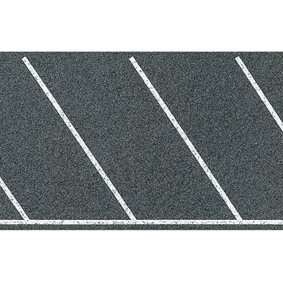 La plus grande part de mobilité se déroule certainement sur les rails, mais on ne peut pas se passer entièrement des routes. Grâce à Faller, la construction routière est réalisée de manière tout aussi réussie que la construction des rails. Les feuilles de chaussée ne conviennent pas cependant comme revêtement du fil de guidage du Car System. Autoadhésif. Marquage en épi.Dimensions : 100 x 6 cm.Echelle HO = 1/87.