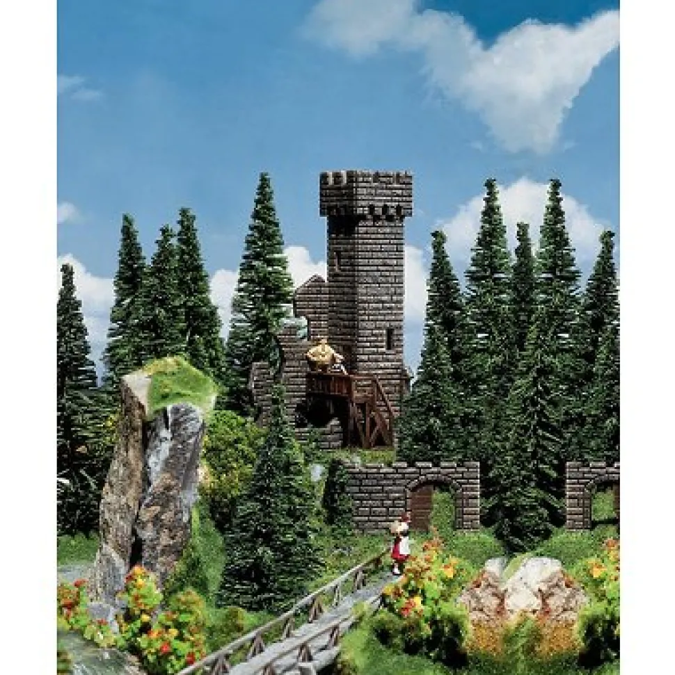 Château en ruine datant du Moyen-Age. La tour en bon état était utilisée comme tour d’observation.Modèle bon marché, facile à construire. Peu encombrant. Particulièrement approprié pour la décoration en arrière-plan.Epoque : il y a bien longtemps…Degré de difficultés : débutant.Dimensions : 14.5 x 8.7 x 13.3 cm. Nombre de pièces : 46.