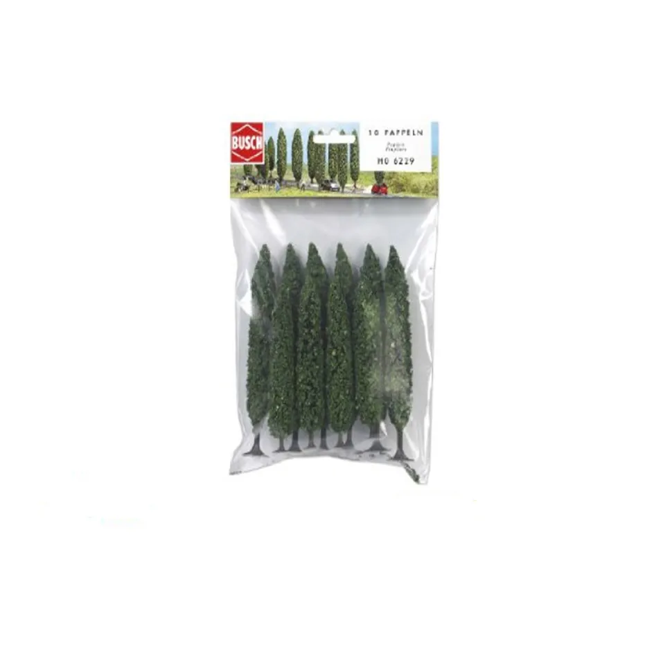 Busch HO 6229 vous propose ce set de 10 peupliers pour l’aménagement de votre diorama.Un arbre seul n’a jamais constitué une forêt, c’est pourquoi vous trouverez une collection de 10 arbres.Les arbres donnent une certaine structure au paysage, ils sont un des éléments indispensables au monde miniature.Hauteur des arbres : de 95 à 120 mmEchelle 1:87Convient pour échelles HO (1/87), TT (1/120) et N (1/160).