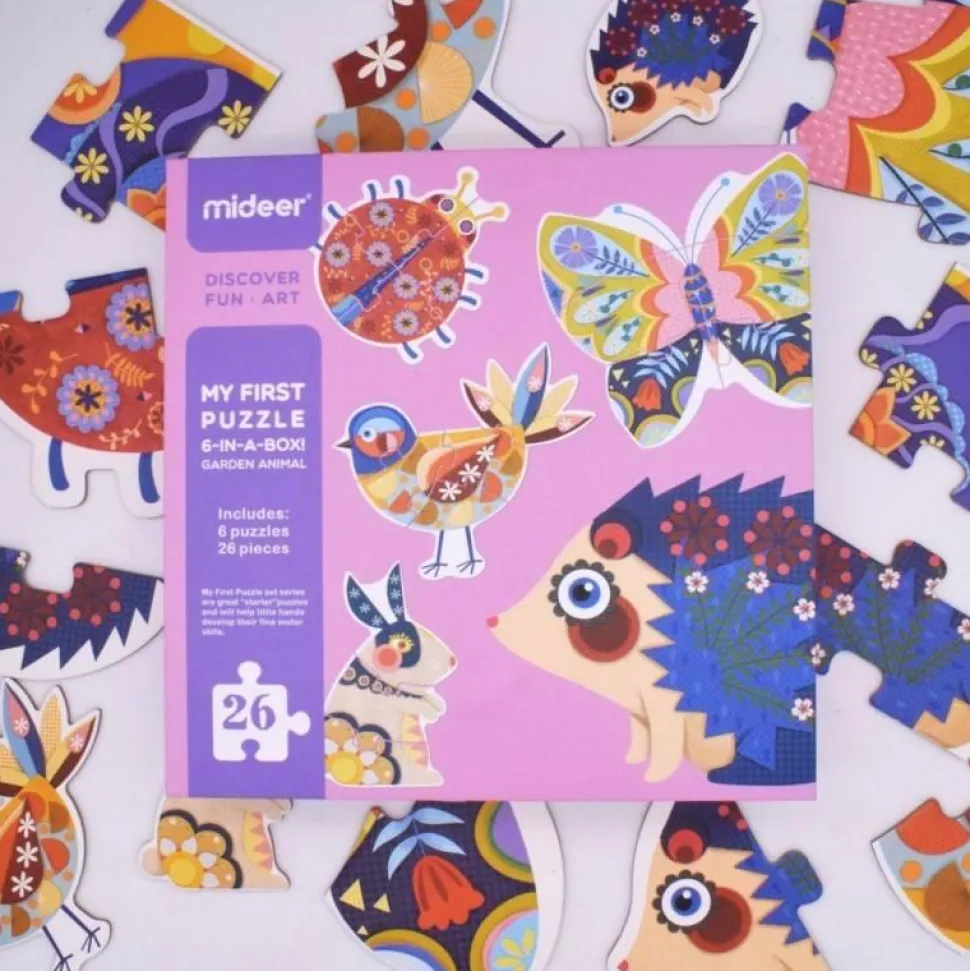 Découvrez notre adorable puzzle sur le thème des animaux du jardin, spécialement conçu pour éveiller la curiosité et la motricité des tout-petits de la marque Mideer !