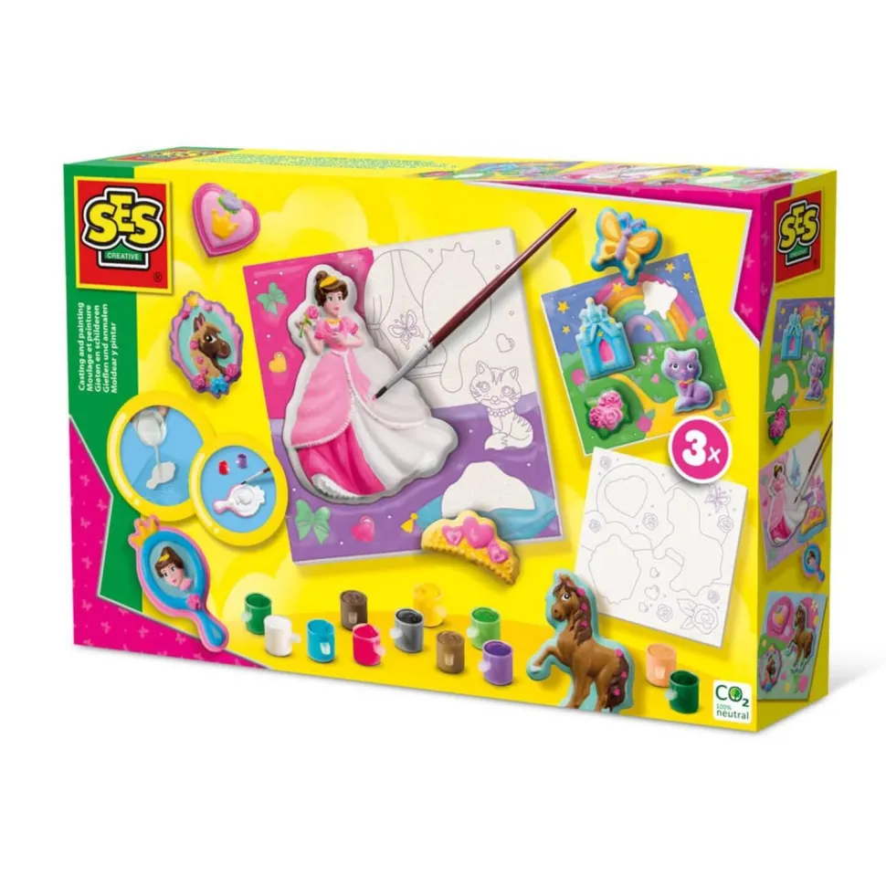 Avec ce joli set complet de moulage en plâtre, vous obtenez non seulement des figurines en plâtre, mais vous réalisez également 3 tableaux de princesses sur de belles toiles solides. Coule le plâtre dans les différentes formes et colle-les au bon endroit sur les toiles. Peignez votre propre tableau de princesse avec jusqu’à 12 couleurs de peinture.