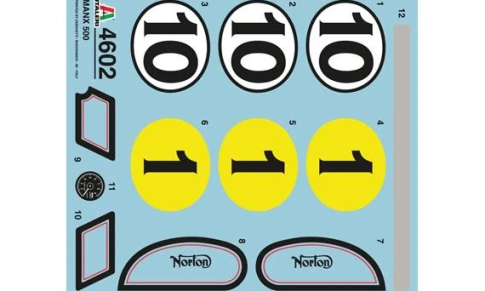 Echelle : 1/9Longueur : 22.8 cmCette célèbre monocylindre 500 cm3 remporta la 1ère compétition qui se disputa en Angleterre sur le circuit tortueux du Tourist Trophy en 1949 avec le pilote Daniell. En 1950 et 1951, elle gagna les Championnats du Monde avec l’intrépide pilote anglais G. Duke. Moto novatrice pour l’époque, elle fut la première à adopter le cadre à double berceau inférieur et supérieur.