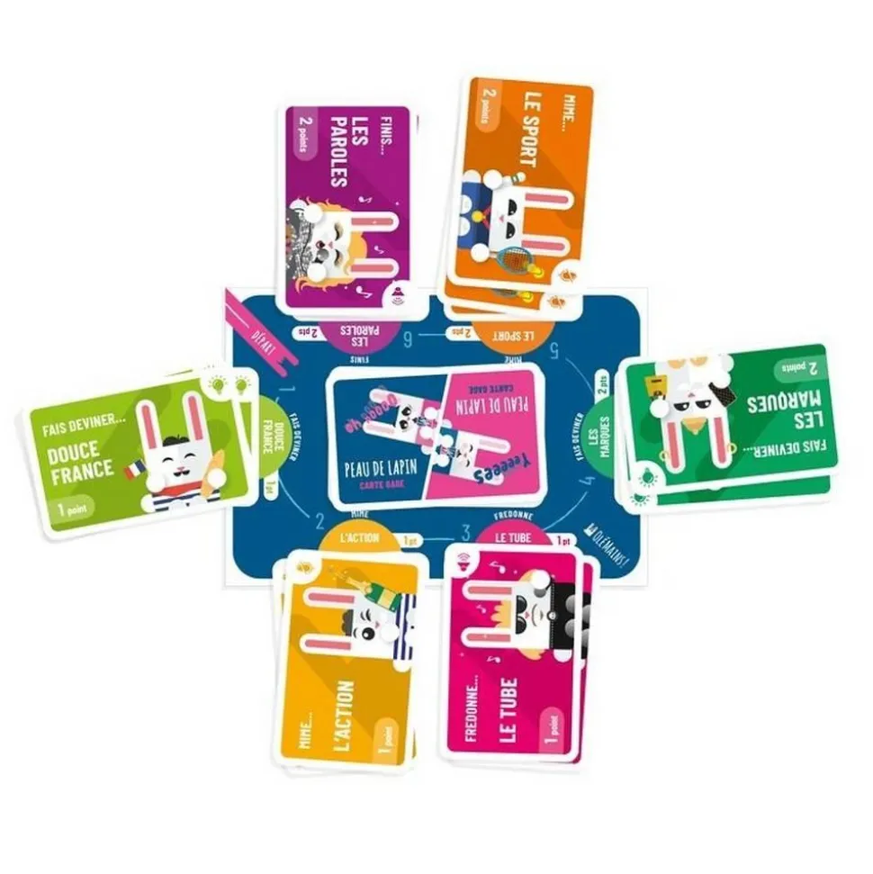 Mets une carte sur ton front, et les membres de ton équipe te font deviner le mot inscrit. Dès que le mot est trouvé tu en prends une autre. Vite, tu as 1 minute pour trouver le plus de mots possibles. Puisaux suivants, c’est l’autre équipe qui joue sur le même thème !