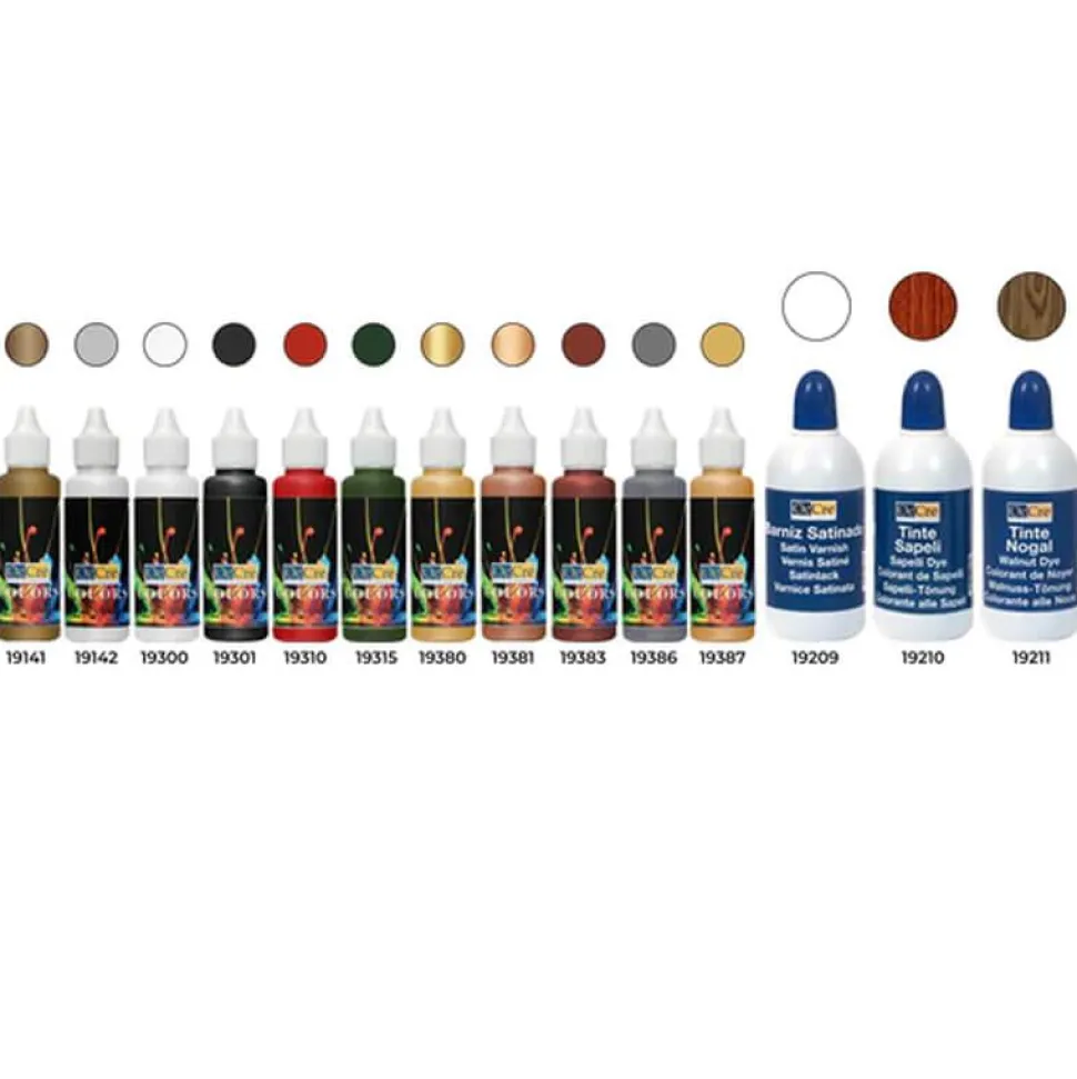 – 11 pots de peinture : ref 19141, 19142, 19300, 19301, 19310, 19315, 19380, 19381, 19383, 19386, 19387