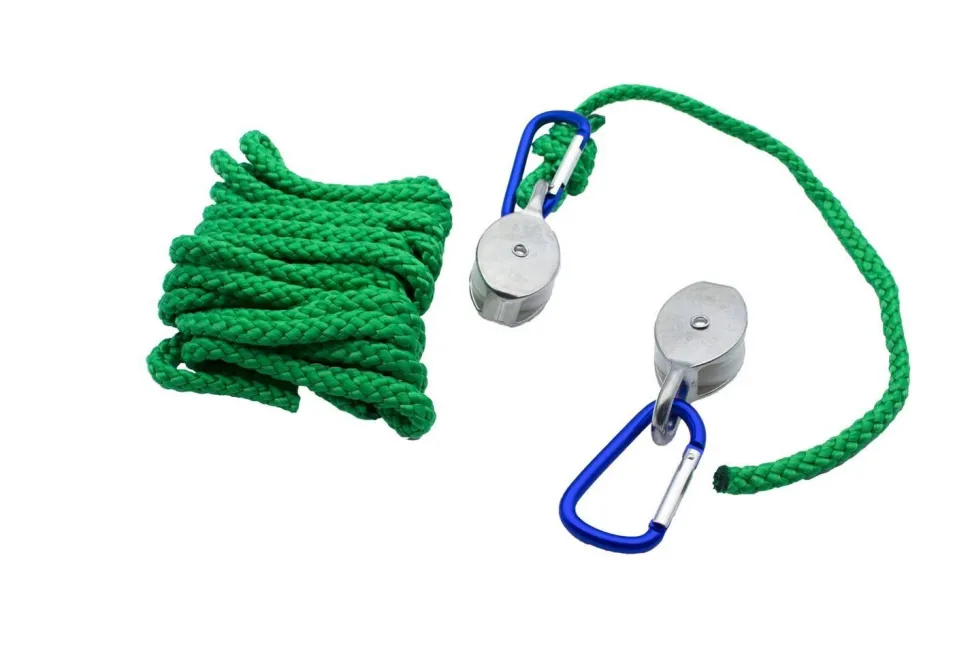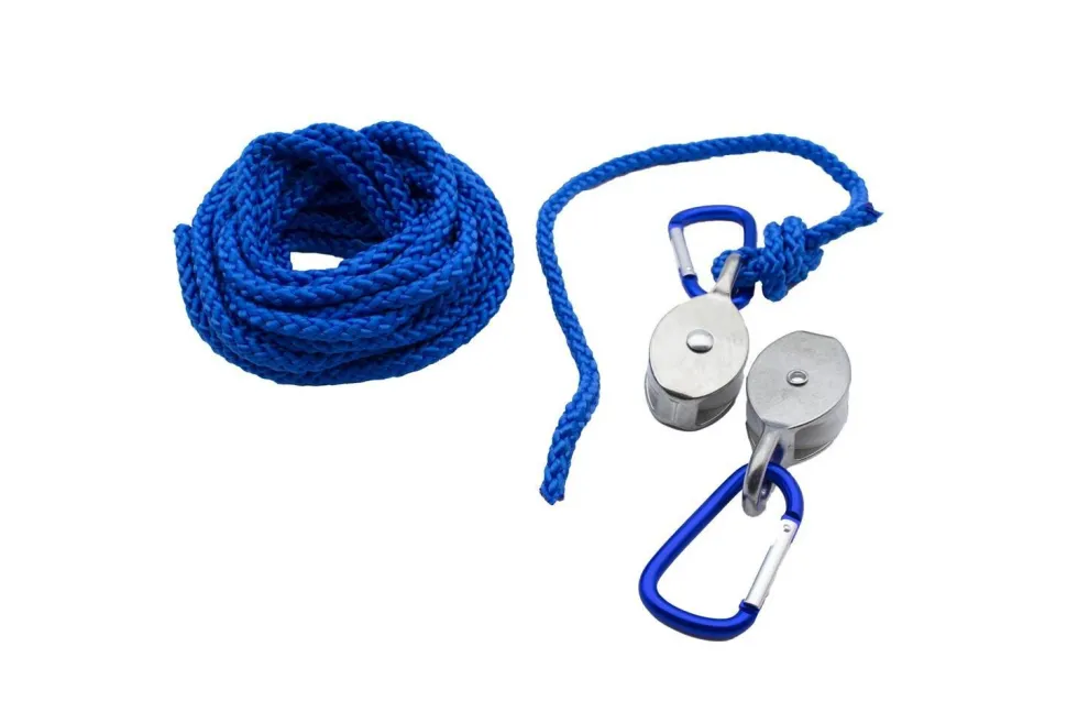Indispensable pour la cabane dans les arbres… car le palan transporte sans effort tout ce qui est nécessaire. Vous vous épargnez ainsi les montées et descentes incessantes, et en plus, c’est amusant ! Accrochez le palan à une branche épaisse grâce au mousqueton. Le second mousqueton sert à maintenir les objets à hisser. Charge maximale : 15 kg. Contenu : 2 mousquetons, 2 rouleaux, corde de 5 m, mode d’emploi. Matériau : métal, PE. Dimensions : corde de 500 cm. Âge : 5 ans.