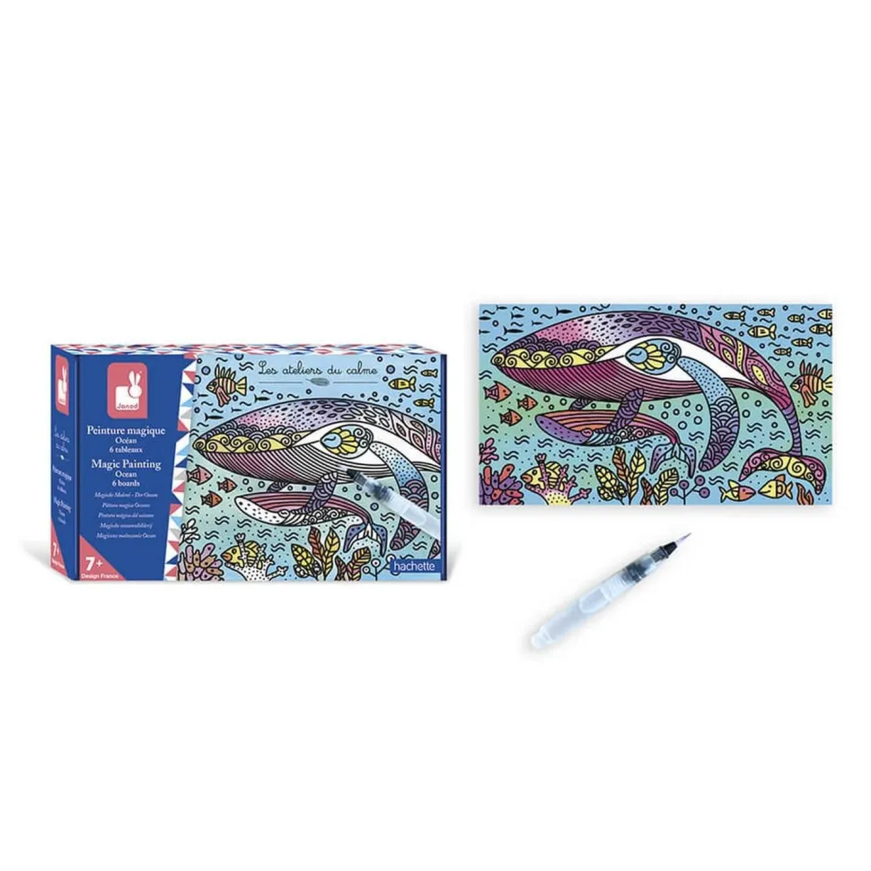 Découvrez ce kit de peinture à l’eau pour réaliser 6 tableaux sur le thème de l’Océan de la marque Janod.