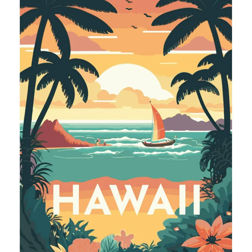 Description du produit : Peinture au numéro : Affiche Vintage Hawaii – toile tendue sur châssis
