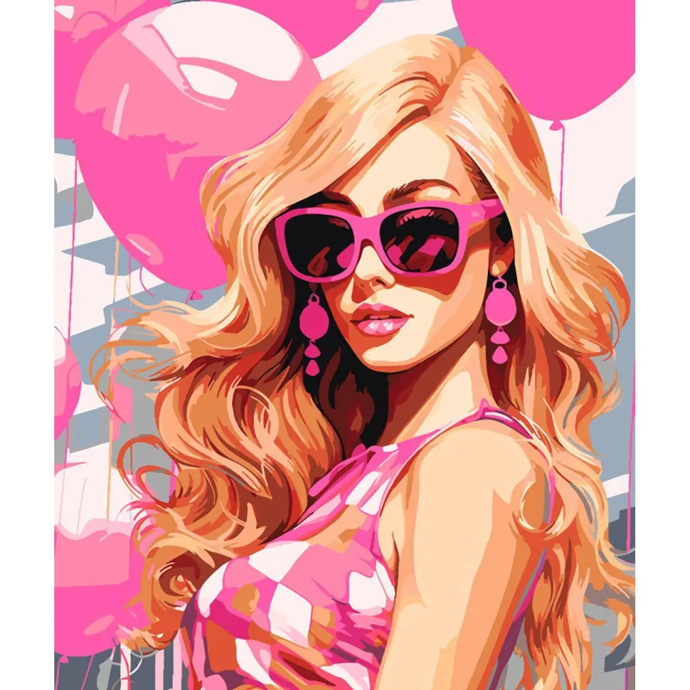 Peinture au numéro : Ballons Roses et Diva – toile tendue sur châssis