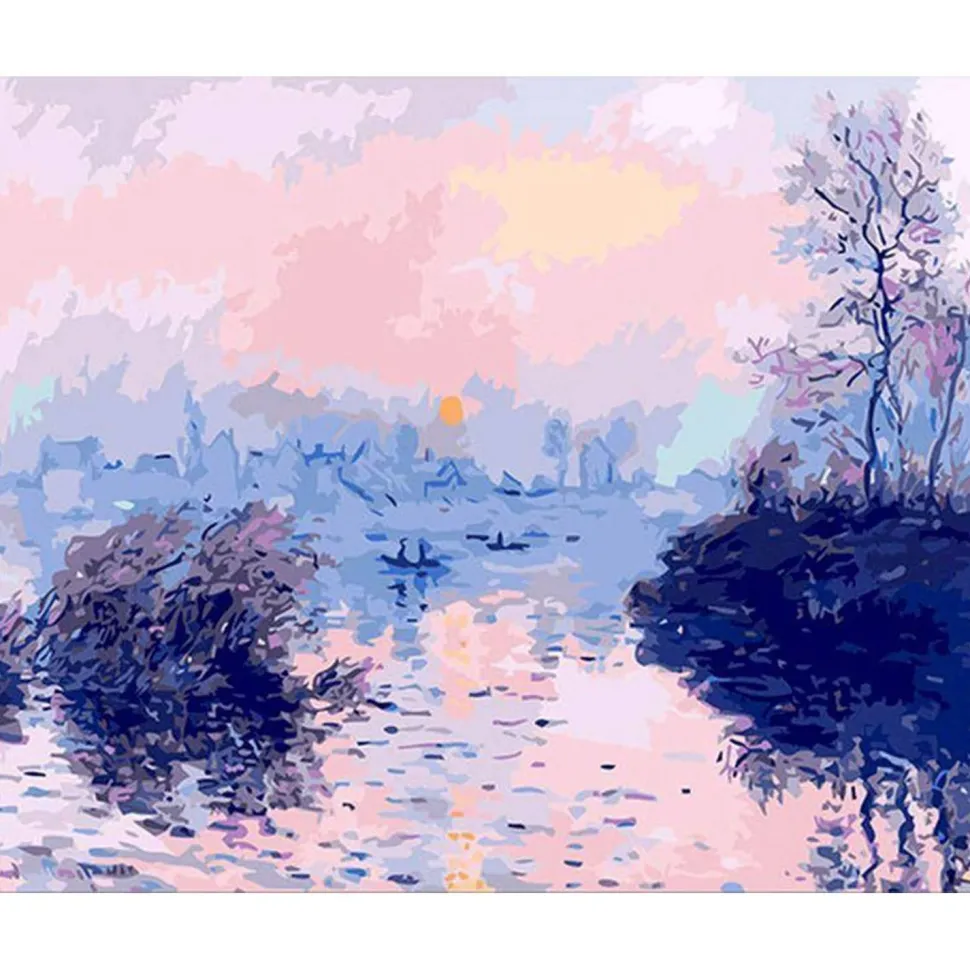 Peinture au numéro : Claude Monet – Soleil couchant sur la Seine à Lavacourt – sans châssis en bois
