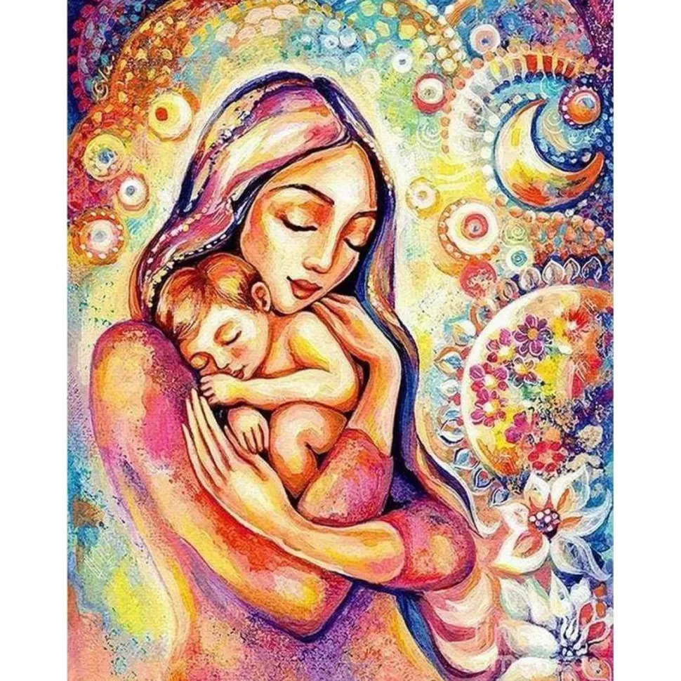 Peinture au numéro : Dans les bras de sa Mère – sans châssis en bois