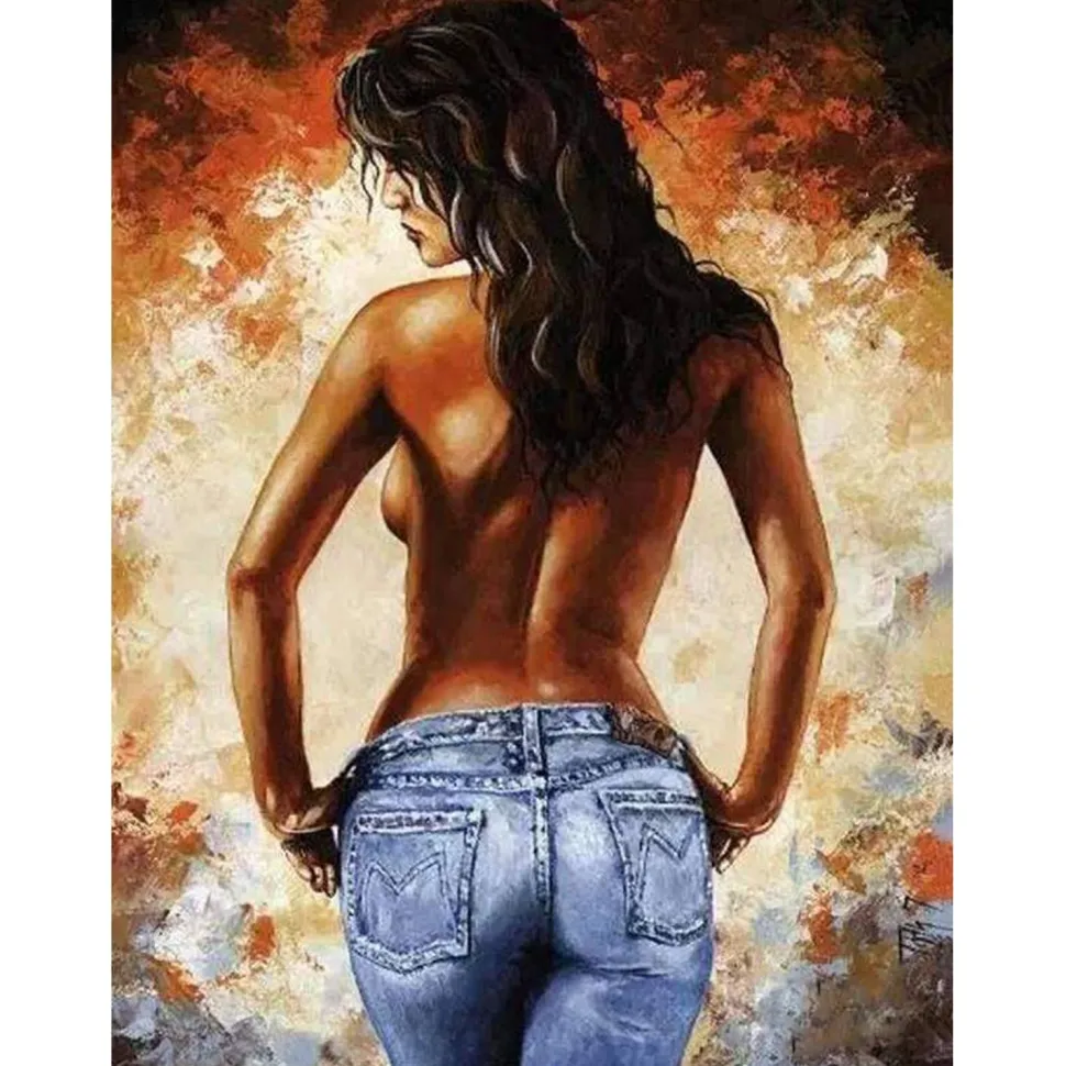 Caractéristiques détaillées : Peinture au numéro : En Jeans de Dos – sans châssis en bois