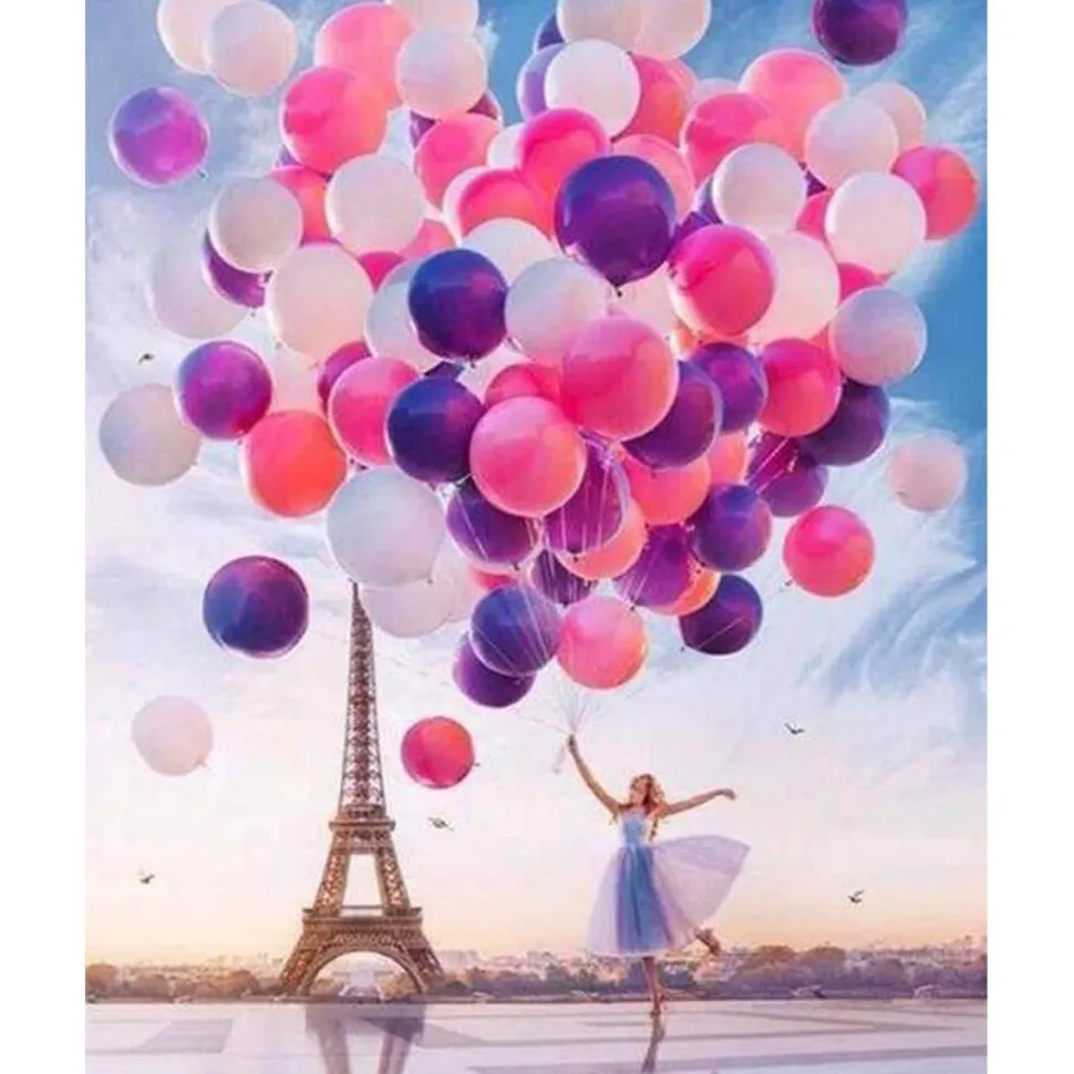 Caractéristiques détaillées : Peinture au numéro : Lâcher de Ballons à Paris – toile tendue sur châssis