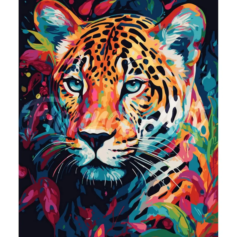 Peinture au numéro : Léopard Coloré Abstrait – toile tendue sur châssis