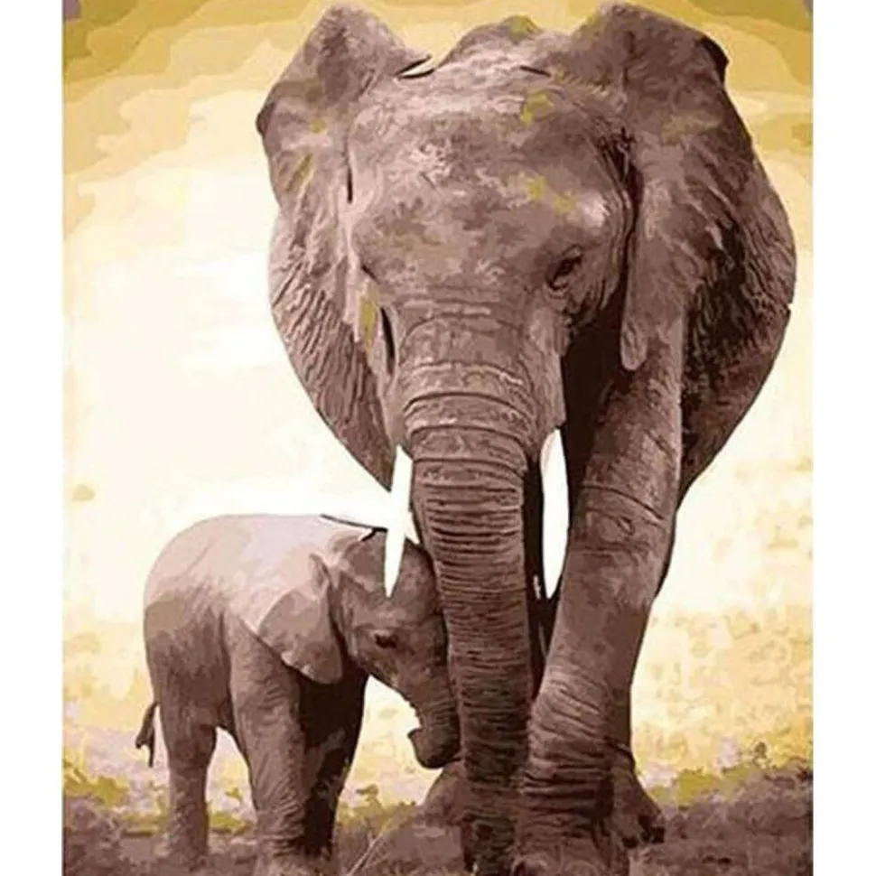 Peinture au numéro : Maman éléphant et son petit – sans châssis en bois