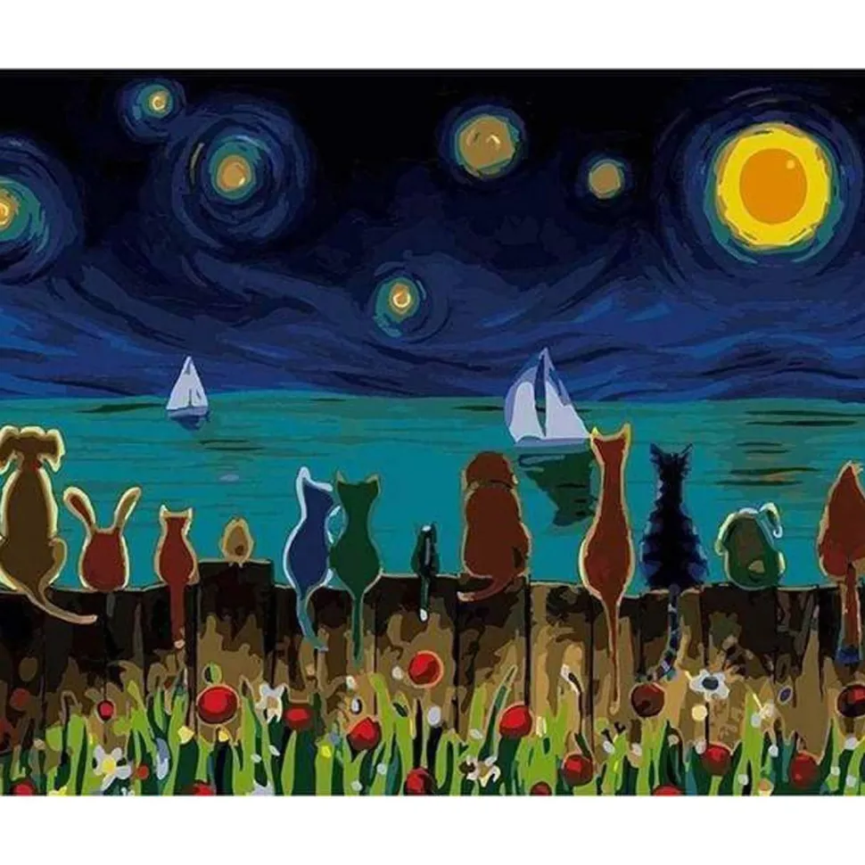 Caractéristiques détaillées : Peinture au numéro : Nuit étoilée et Animaux de dos – sans châssis en bois
