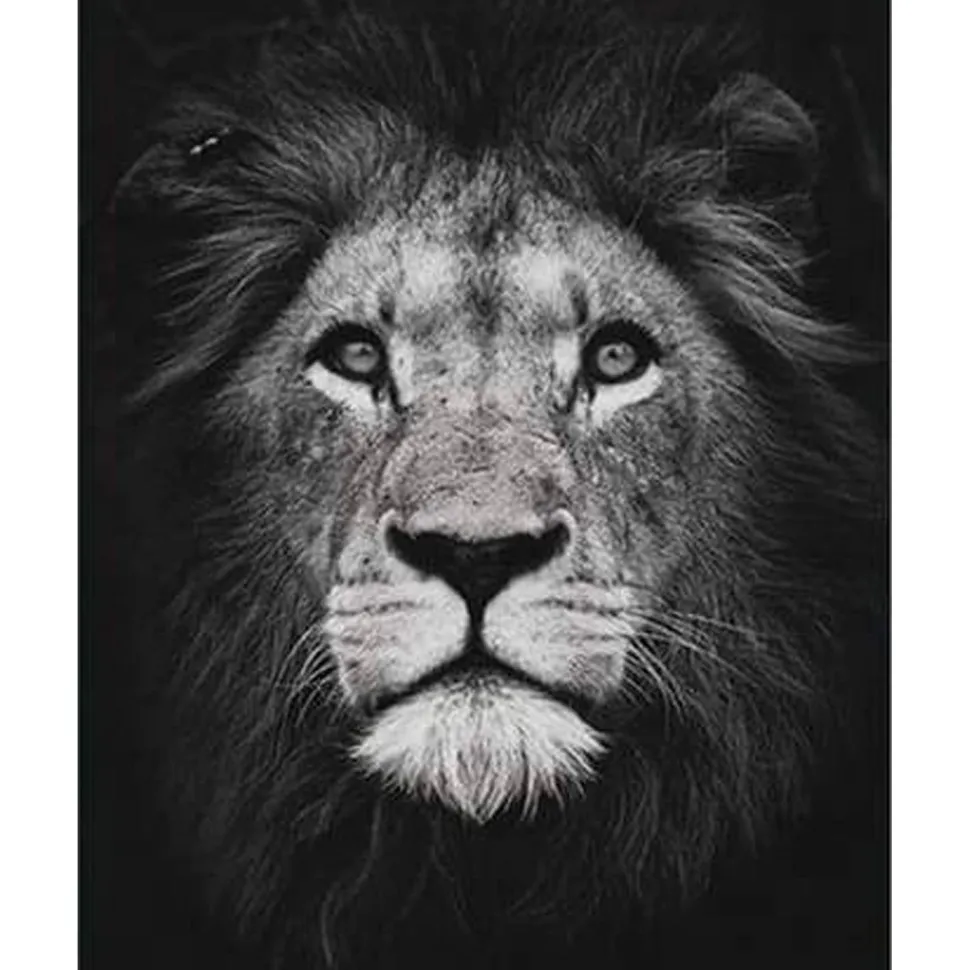 Caractéristiques détaillées : Peinture au numéro : Tête de lion en noir et blanc – sans châssis en bois
