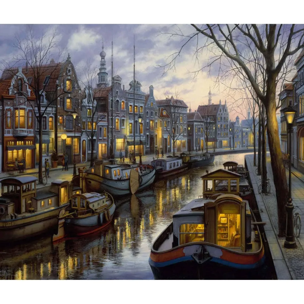 Peinture au numéro : Vie sur le canal – sans châssis en bois