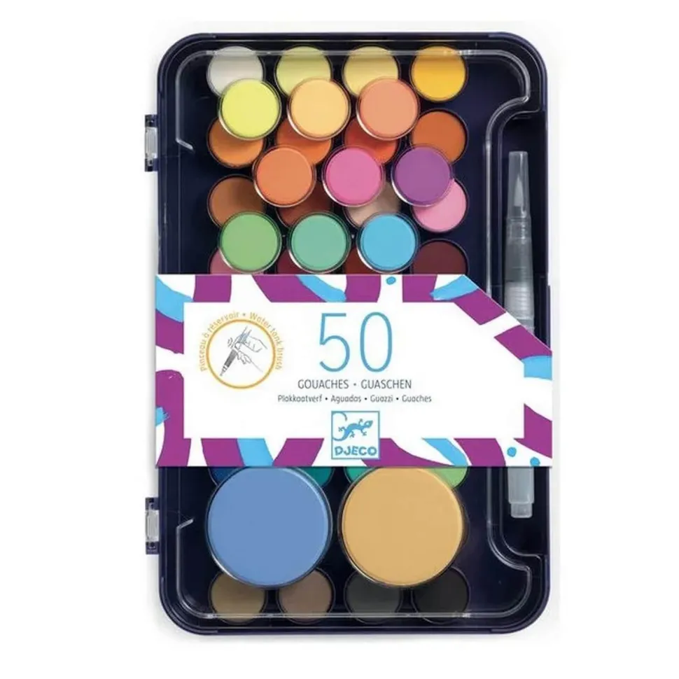 Découvrez la palette d’artiste de 50 gouaches de la marque Djeco !