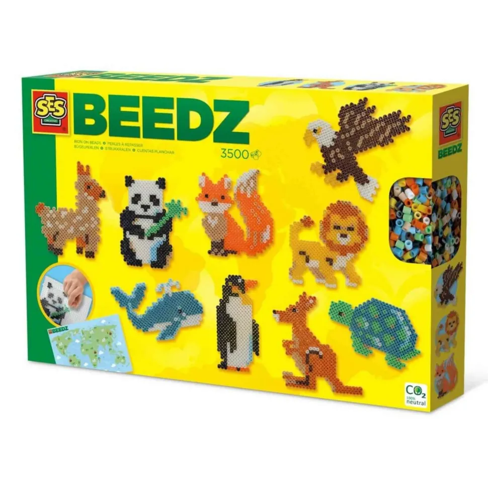 Un monde plein d’animaux différents à découvrir, avec ce kit de perles à repasser de la marque SES creative. Avec ces 3500 perles à repasser et grâce au livret d’instruction, divers animaux du monde peuvent être fabriqués. Faites un kangourou, un panda, un lion ou un pingouin ou partez à la découverte de nouveaux animaux. Une carte du monde extra large est inclue pour encore plus de plaisir !