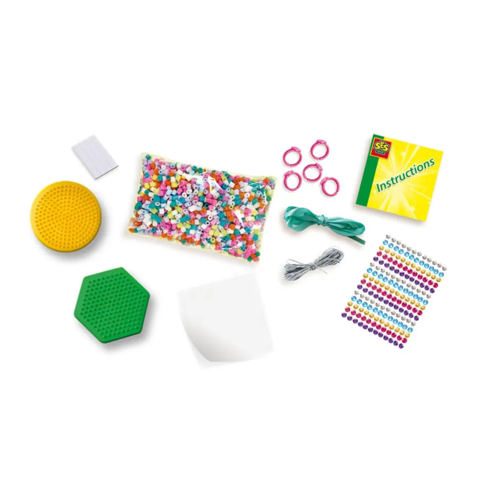 Avec ce kit de perles à repasser de la gamme BEEDZ de SES Creative, tu peux créer de superbes bijoux ! Fabrique de jolis arcs-en-ciel, des papillons ou des fleurs à coller sur des bracelets et des bagues. Tu peux même décorer tes créations avec les autocollants et personnaliser tes bijoux.