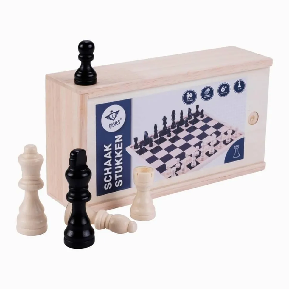 Hauteur du roi 77 mm. Feutrées au dessous. Boîte en bois avec 2 compartiments