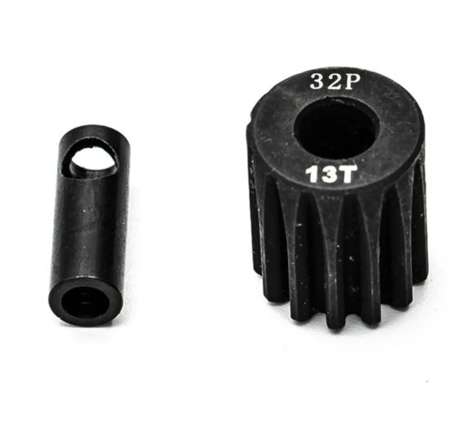 Caractéristiques détaillées : Pignon moteur 32dp ø5mm + adaptateur 3,17mm 13 dents en acier