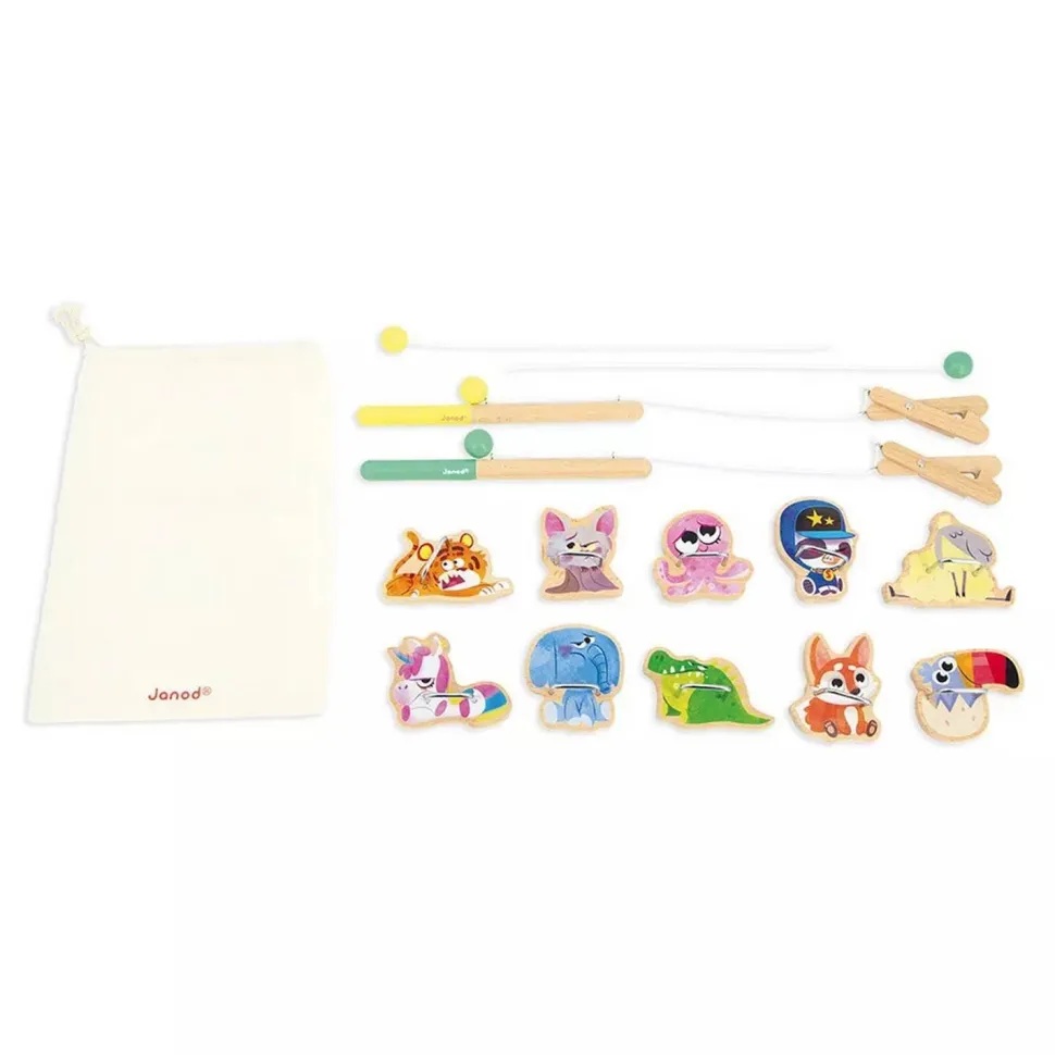 Contenu : 10 animaux à saisir, 2 pinces en bois et 1 sac en coton inclus