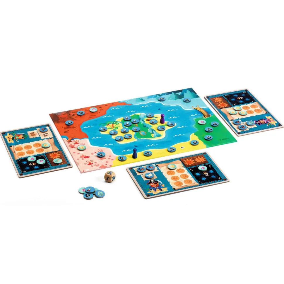 À l’abordage ! Quel pirate trouvera le trésor d’Édouard le Terrible ? Celui-ci l’a caché au cœur de l’île aux crocodiles et il vous faudra toute la chance et l’audace des flibustiers pour parvenir à le débusquer.