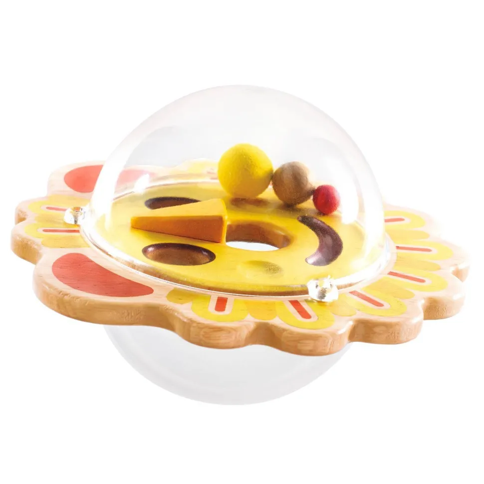 Contenu : 1 balle en bois et plastique contenant 3 billes en bois et plastique.