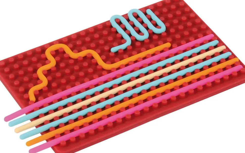 … La Senso-Board est un jeu polyvalent qui stimule les capacités sensorielles et la motricité fine. Des bosses souples d’un côté stimulent la perception tactile. L’autre côté présente un labyrinthe de formes courbes. Les deux côtés offrent une expérience tactile stimulante pour les petits doigts. Les 11 cordons en caoutchouc fournis permettent de créer des motifs et des formes colorés, aidant ainsi les enfants à développer leur créativité tout en améliorant leur dextérité et leur coordination œil-main de manière ludique.