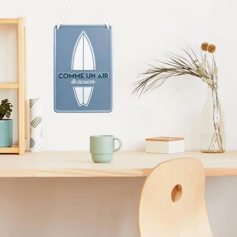 Dans un coin de votre salon, à l’entrée de votre maison principale, de vacances ou même de votre établissement, cette plaque en métal épurée ajoutera une note d’originalité, de farniente et de décoration tendance