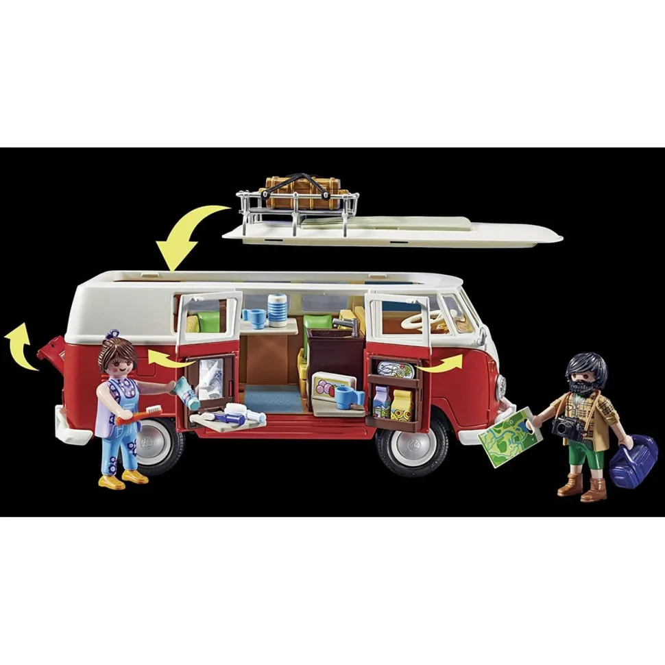 Le mythique camping-car Volkswagen T1 Combi prend la route pour les vacances avec à son bord vos figurines Playmobil ! Idéal pour partir à l’aventure, ce van est entièrement équipé avec un coin salon, un lit pliable, une mini-cuisine… Alors bonne route !