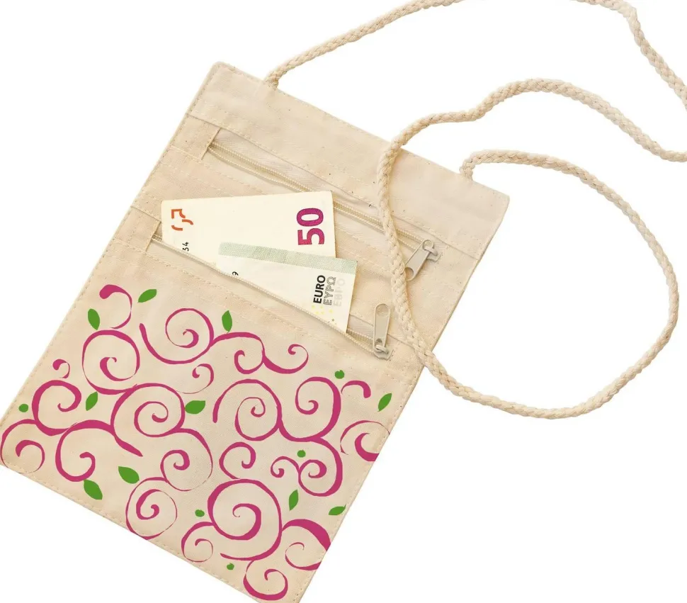 Description du produit : Porte-monnaie en coton nature avec bandoulière